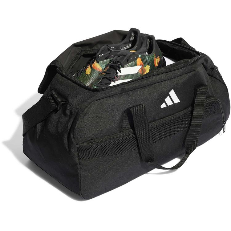 Neem je voetbalspullen in stijl mee met deze adidas Tiro League duffeltas. Het kleine formaat is perfect voor korte uitstapjes of onderweg naar de sportschool, en de schouderriem met kussentje houdt je comfortabel tijdens elke reis. Door de U-vormige opening kun je makkelijk bij je spullen en het geventileerde schoenenvak houdt je kicksen fris.