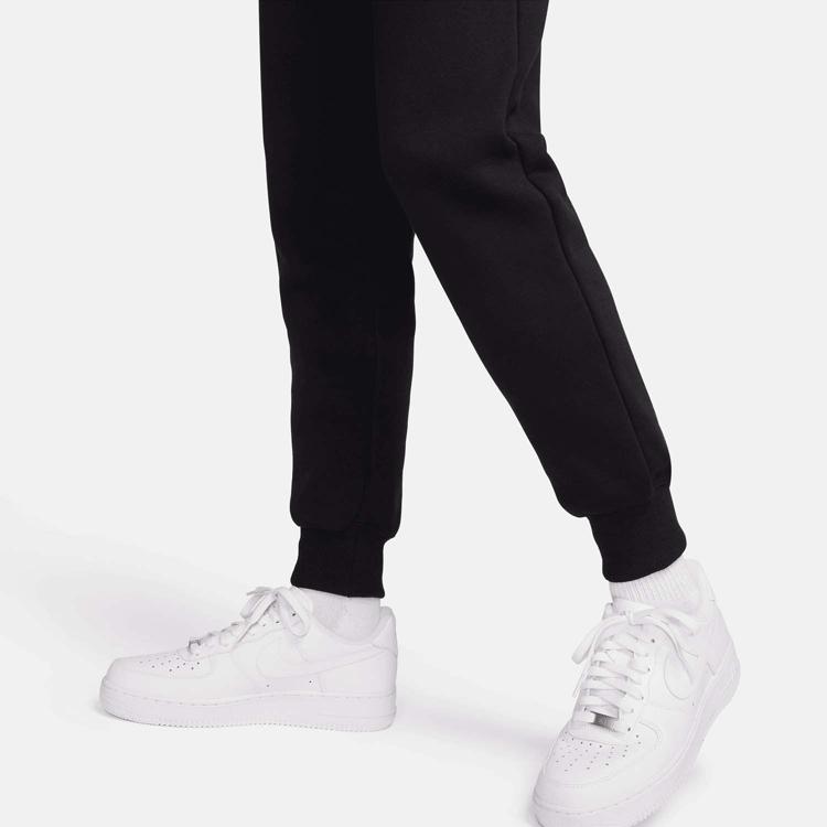 Nike Sportswear Phoenix Fleece Joggingbroek met halfhoge taille voor dames Kom in actie en geef je garderobe een upgrade met krachtige, comfortabele vibes. Extra zachte fleece maakt deze joggingbroek perfect voor die dagen waarop je kiest voor comfortabel. En de ruime (maar niet te baggy) pasvorm bij de heupen en dijen loopt smaller uit bij de enkels, zodat je je favoriete schoenen kunt laten zien. In de zakken kun je snel je sleutels en telefoon opbergen en koude handen opwarmen. Onze halfzware, geborstelde fleece voelt extra zacht aan de binnenkant en glad aan de buitenkant, voor een comfortabel gevoel en een vormvast design. Trek de elastische tailleband strakker met het trekkoord dat je snel kunt strikken.