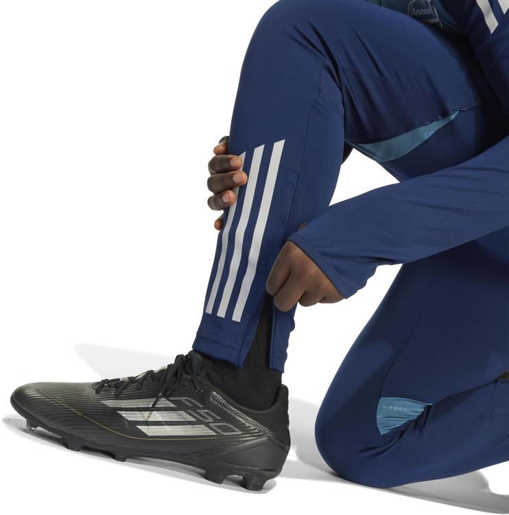 Dit is een junior versie van de adidas Arsenal sportbroek die de spelers dragen als ze zich voorbereiden op een competitiewedstrijd. Door het gestroomlijnde silhouet zit-ie sprints of voetenwerk niet in de weg, en AEROREADY beperkt vocht tot een minimum. In de twee ritszakken kun je kleine items kwijt. Het op de broekspijp gestreken clubembleem laat zien hoeveel je van voetbal houdt.