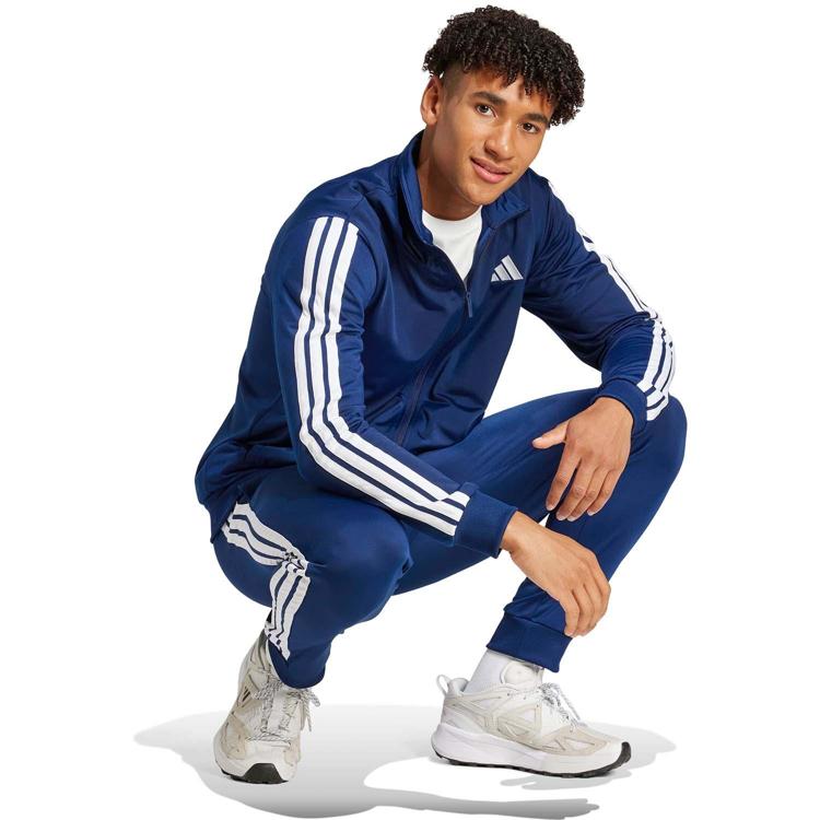 Het Adidas Sportswear Basic 3-Stripes Tricot trainingspak voor heren is een comfortabel en sportief trainingspak dat ideaal is voor trainingen, warming-ups en vrije tijd. Het pak heeft een regular fit, een jack met volledige ritssluiting en een broek met elastische tailleband en aantrekkoord. Dankzij het ademende en duurzame gerecyclede polyester biedt dit adidas trainingspak optimale bewegingsvrijheid en draagcomfort.